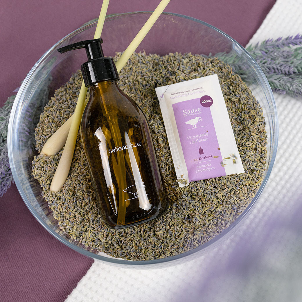Nachhaltige Flüssigseife zum Nachfüllen in Pulverform. So wird aus deinem Seifenspender am Waschbecken ein täglicher Weltretter. Denn du sparst über 90% CO2 beim Transport, nutzt nur sorgfältig ausgesucht Inhaltsstoffe und kannst die Verpackung im Altpapier entsorgen.